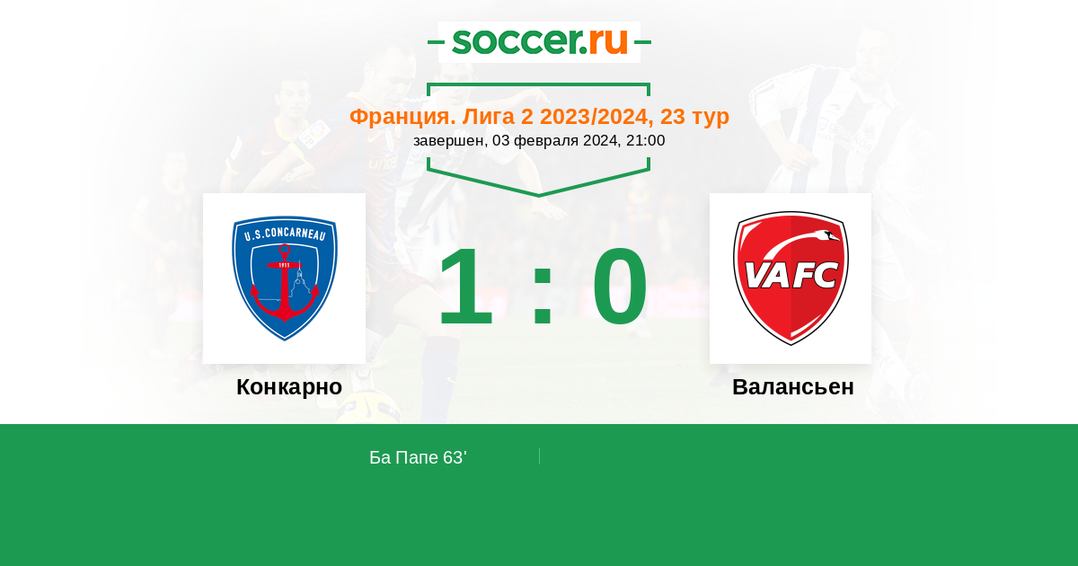 63' (1:0) Ба Папе (14) (Фоссурье Жюльен (33))