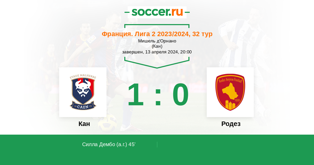 45' (1:0) Автогол Силла Дембо (11)