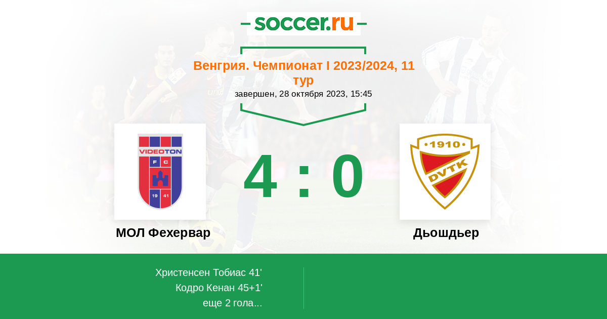 41' (1:0) Христенсен Тобиас (20) (Шен Саболч (7))