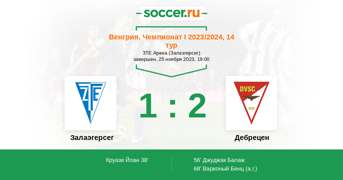 Запасные: 67 Де Оливейра Жоао (с 46'), 77 Сечи Марк (с 74'), 2 Мойжиш Александер (с 84'), 21 Романчук Александр (с 84'), 8 Туболи Мате (с 90'), 3 Хорняк Чаба, 1 Милошевич Марко, 12 Эрдели Бенедек, 27 Боди Адам, 33 Варга Йожеф, 31 Беварди Зомбор