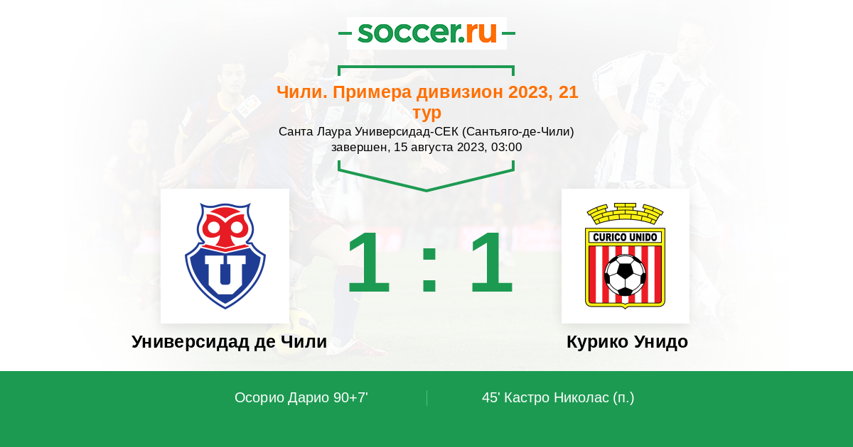 45' (0:1) Кастро Николас (20)
