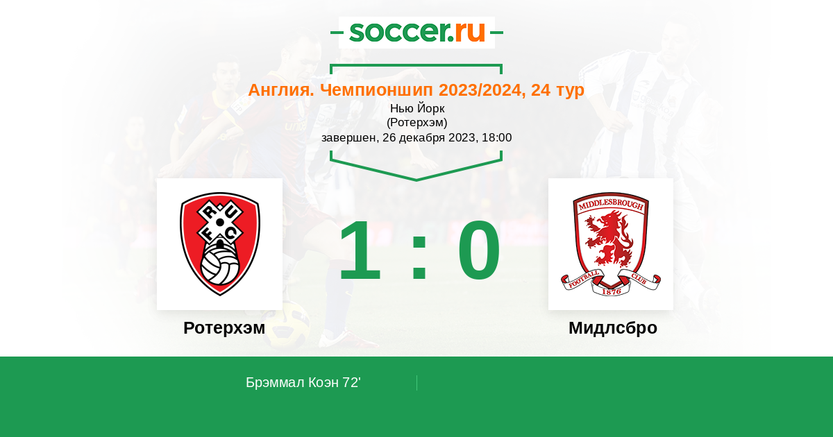 72' (1:0) Брэммал Коэн (3) (Ратбоун Оливер (18))