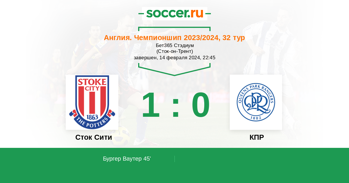 45' (1:0) Бургер Ваутер (6) (МакНэйли Люк (23))