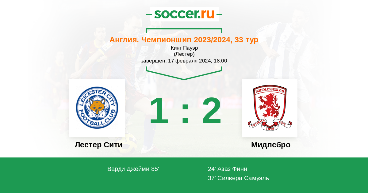 Запасные: 28 Кэннон Томас (с 46'), 29 Акгюн Юнус (с 58'), 35 МакАтир Каси (с 63'), 9 Варди Джейми (с 63'), 11 Олбрайтон Марк (с 89'), 5 Дойл Каллум, 4 Коуди Конор, 17 Чудхури Хамза, 41 Столярчук Якоб