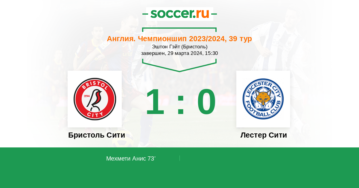 73' (1:0) Мехмети Анис (11) (Сайкс Марк (17))