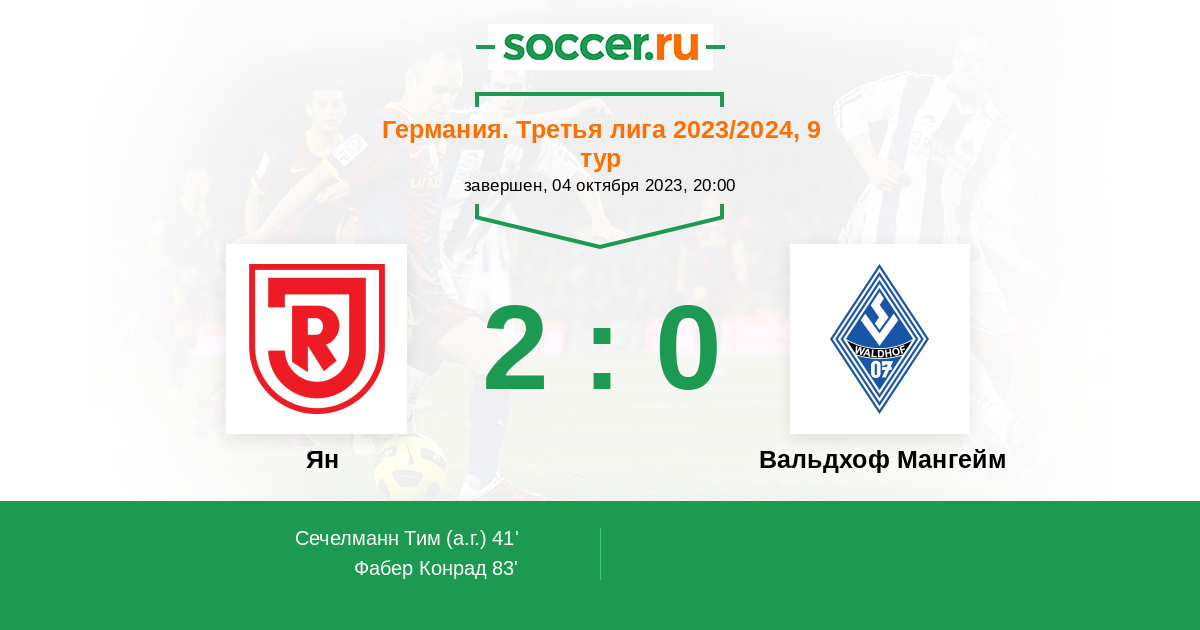 41' (1:0) Автогол Сечелманн Тим (4)