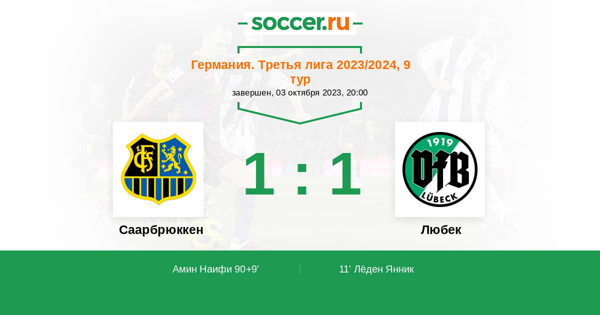 11' (0:1) Лёден Янник (30) (Гезюсирин Тарик (25))