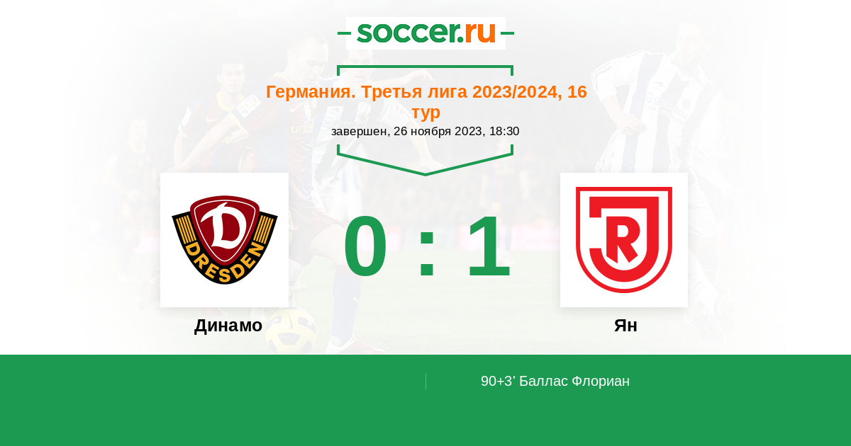 90+3' (0:1) Баллас Флориан (4) (Эйзенхут Тобиас (21))