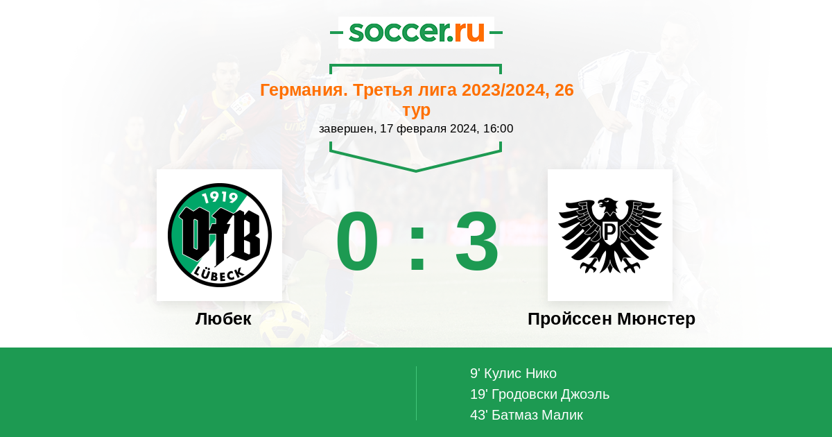19' (0:2) Гродовски Джоэль (9)