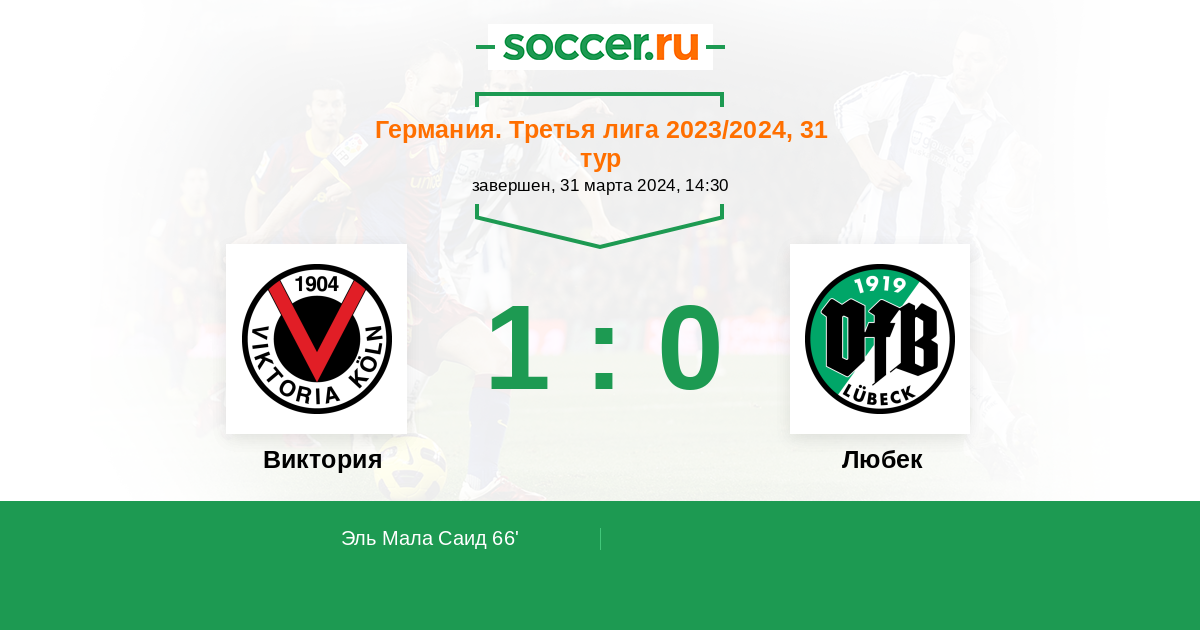 66' (1:0) Эль Мала Саид (22) (Дитц Ларс (2))