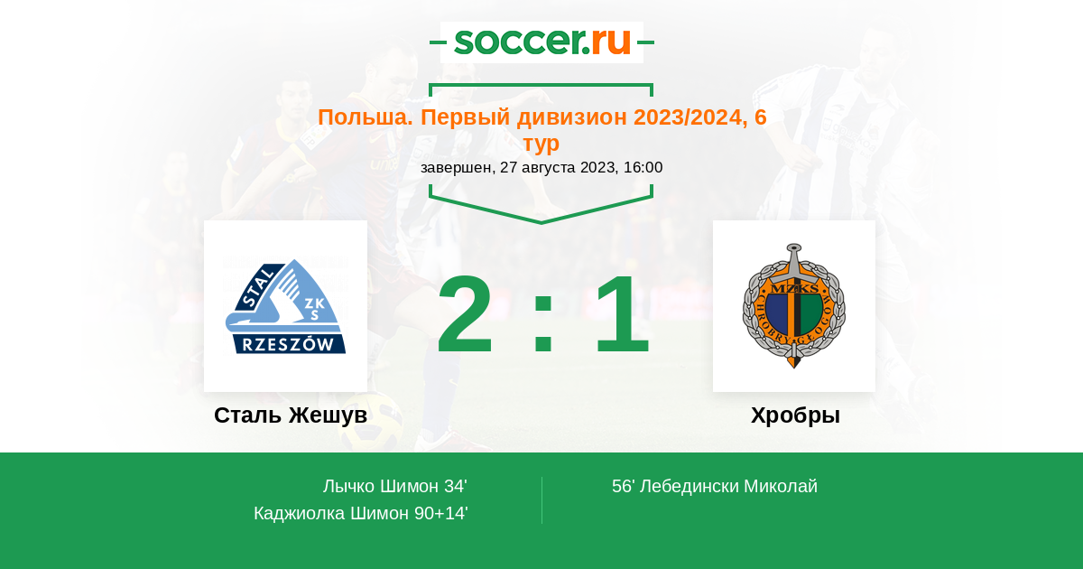34' (1:0) Лычко Шимон