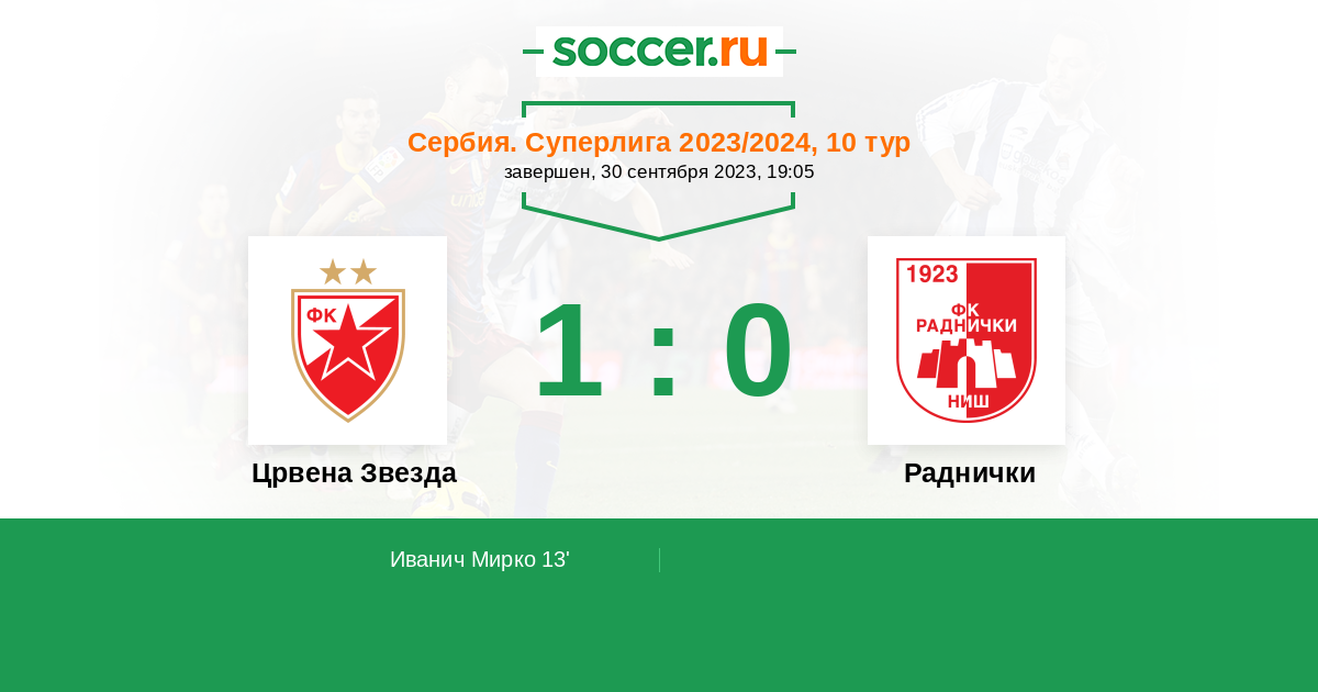 13' (1:0) Иванич Мирко (4)