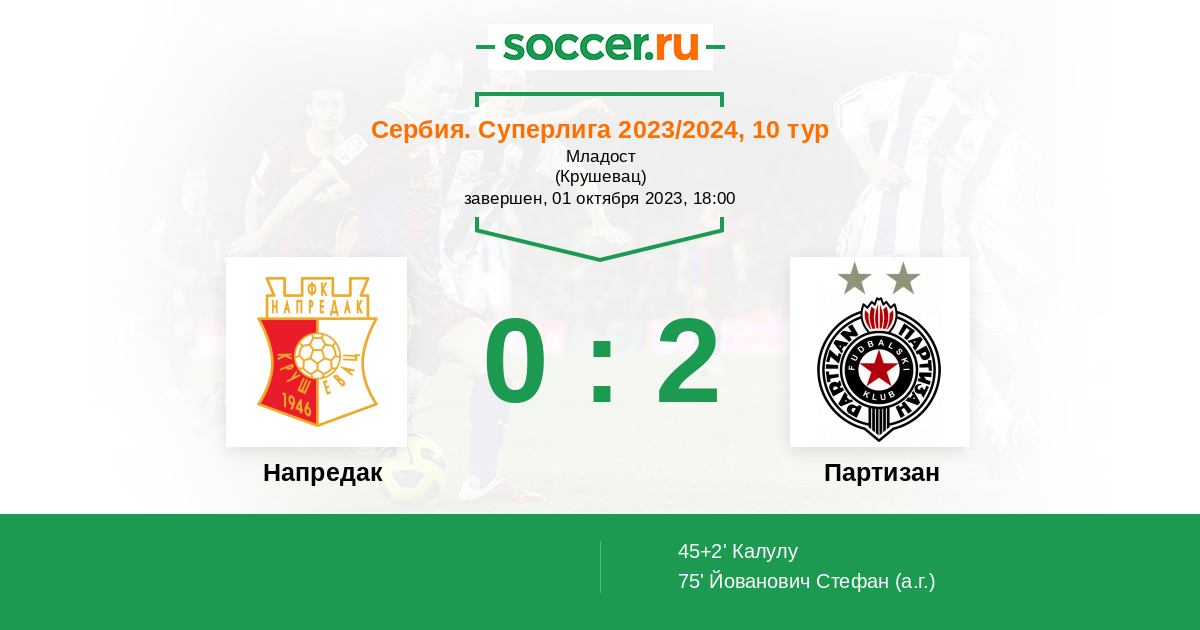 75' (0:2) Автогол Йованович Стефан (2)