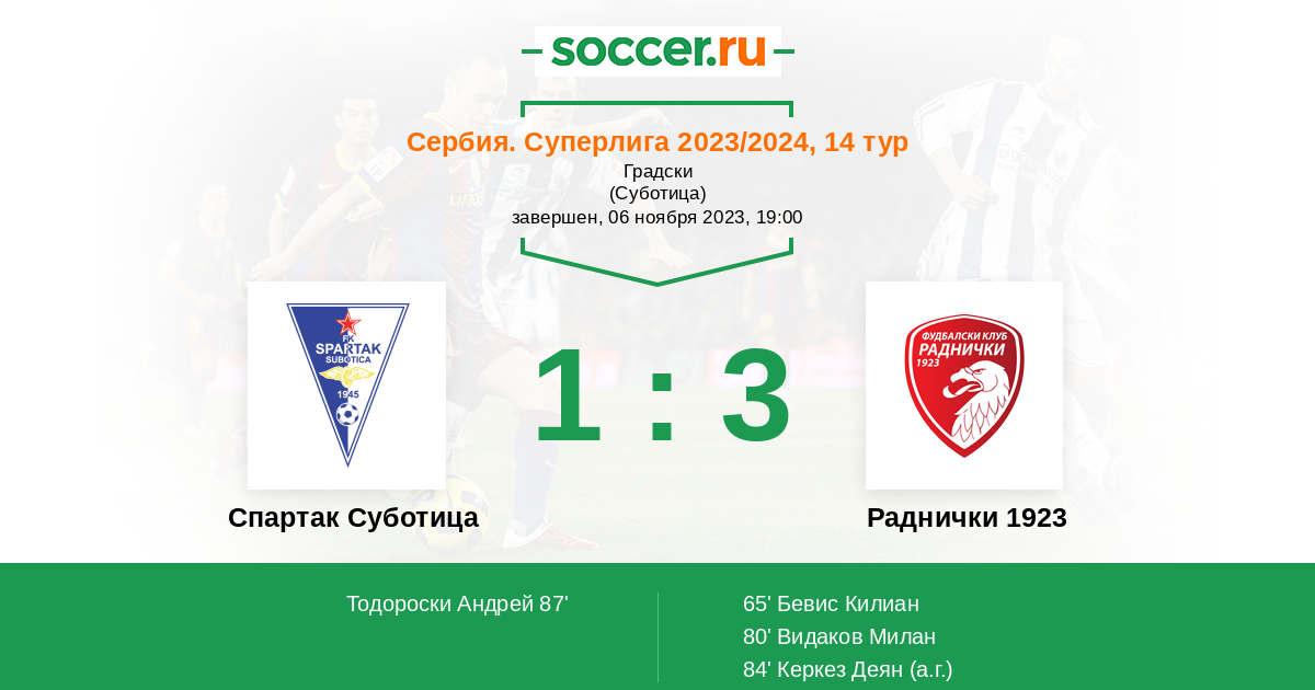 Спартак Суботица - Раднички 1923