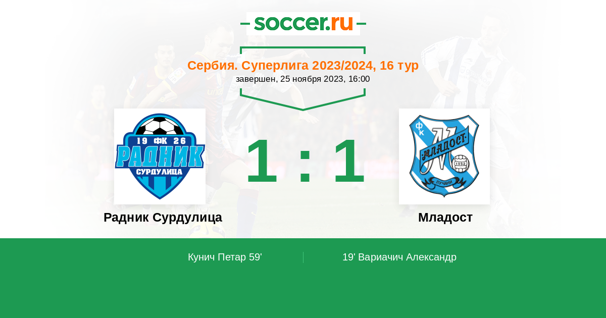19' (0:1) Вариачич Александр (17)