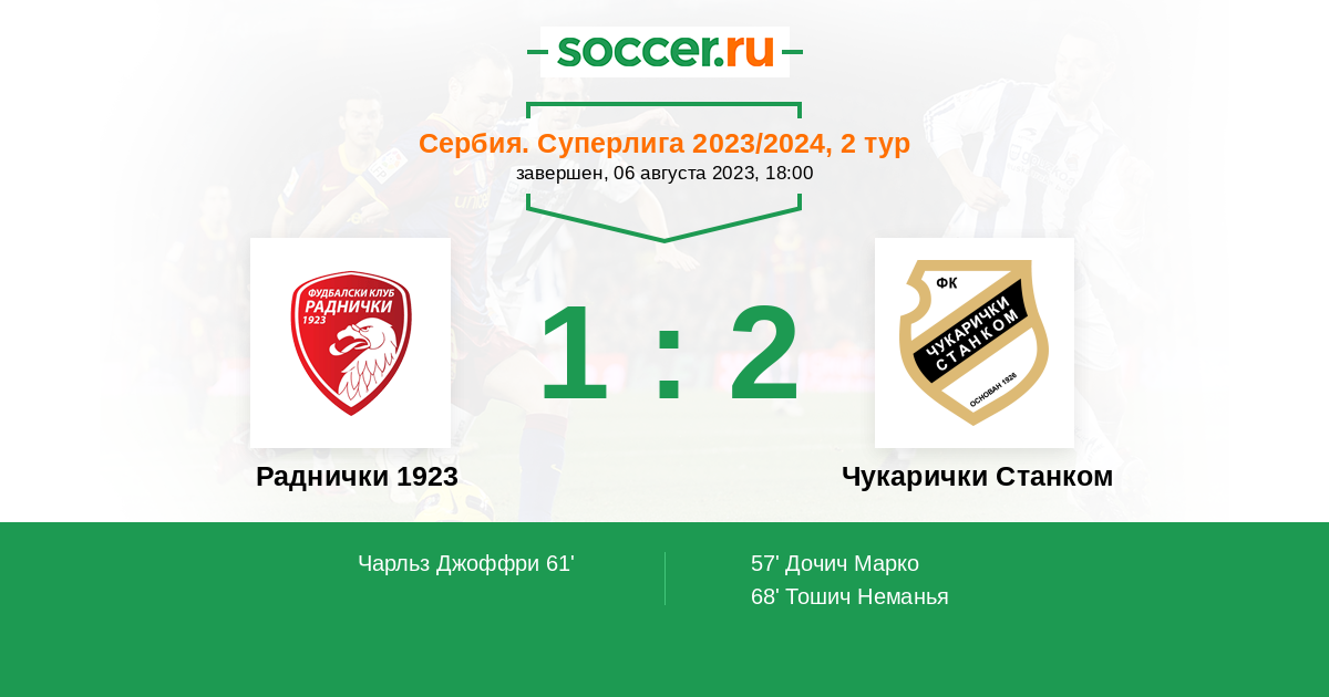 68' (1:2) Тошич Неманья (3) (Никчевич Бойица (47))