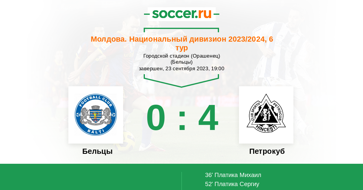 52' (0:2) Платика Сергиу (11)