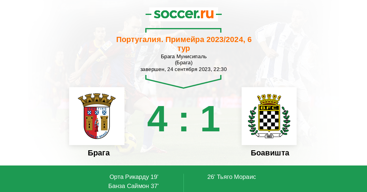 19' (1:0) Орта Рикарду (21) (Гомес Виктор (2))