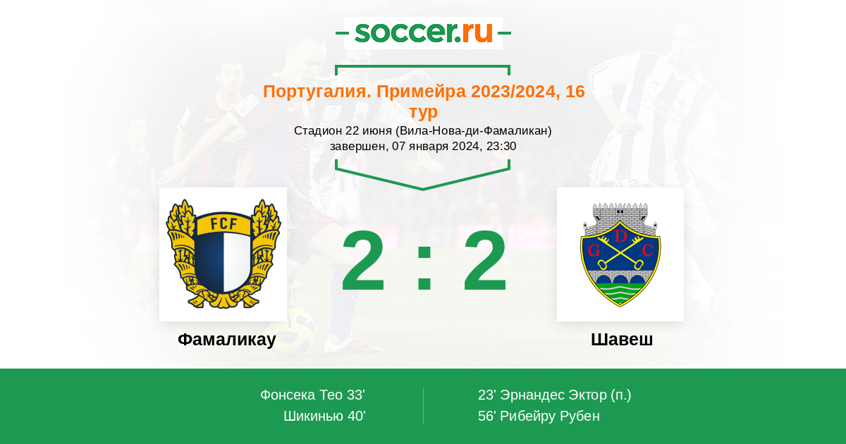 56' (2:2) Рибейру Рубен (20)