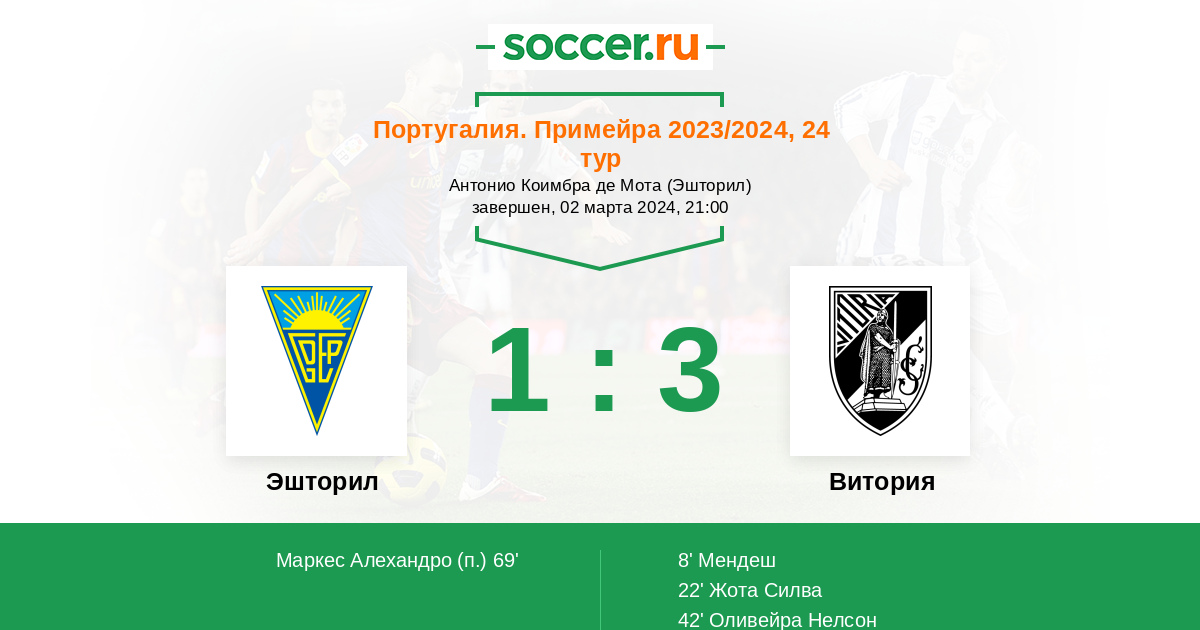 42' (0:3) Оливейра Нелсон (79) (Мендеш (17))