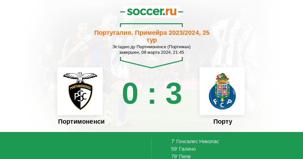 79' (0:3) Пепе (11) (Санчес Хорхе (15))