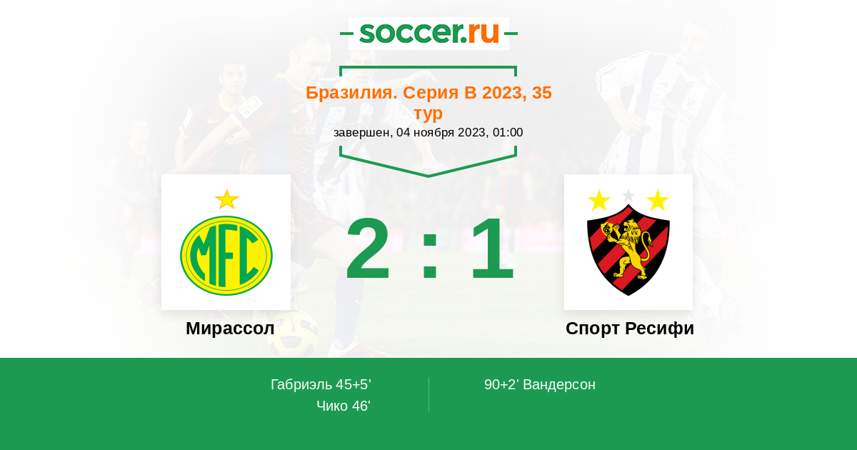 46' (2:0) Чико (7) (Зе Роберто (9))