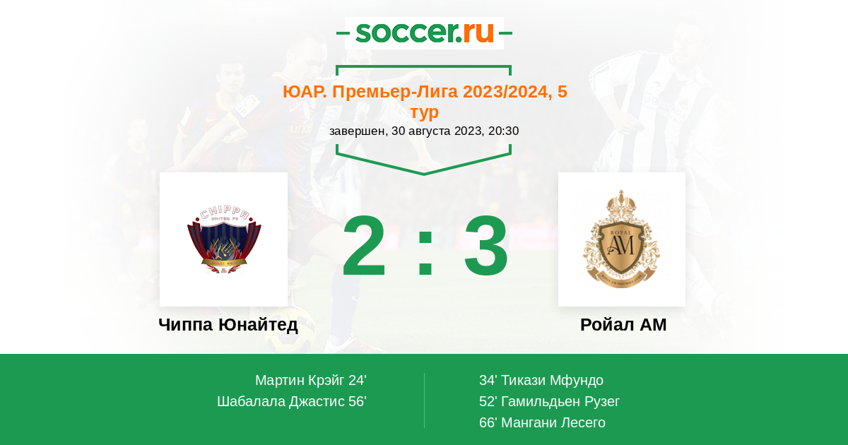 56' (2:2) Шабалала Джастис (33) (Муленга Аугустин (15))