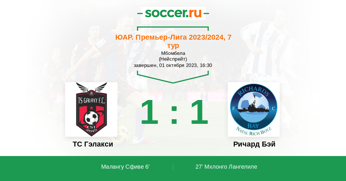 27' (1:1) Мхлонго Лангелиле (21)