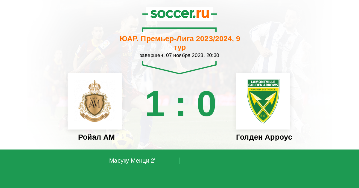 2' (1:0) Масуку Менци (50) (Маласела Кабело (12))