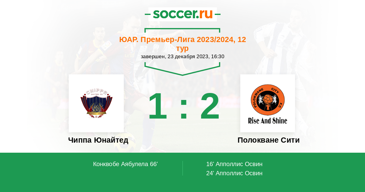 24' (0:2) Апполлис Освин (11) (Мапфумо Дуглас (19))