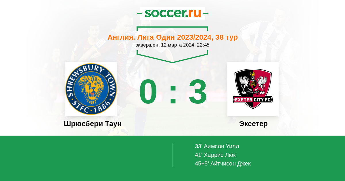 33' (0:1) Аимсон Уилл (4) (Коул Рик (12))
