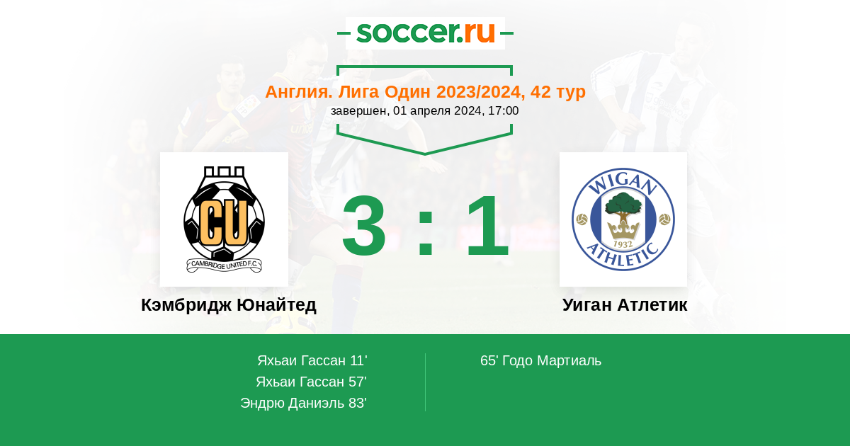 Кэмбридж Юнайтед - Уиган Атлетик