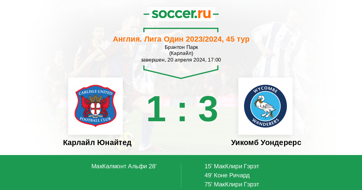 15' (0:1) МакКлири Гэрэт (12) (Тэйлор Дэйл (20))