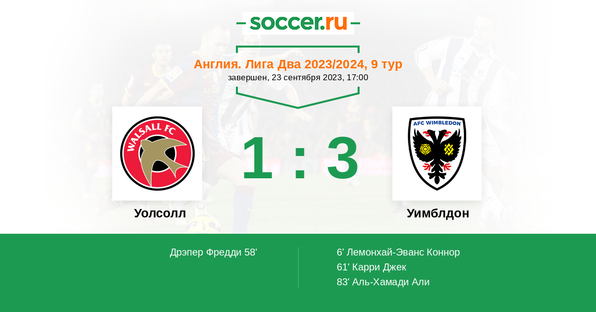 58' (1:1) Дрэпер Фредди (15) (Хатчинсон Исаак (8))