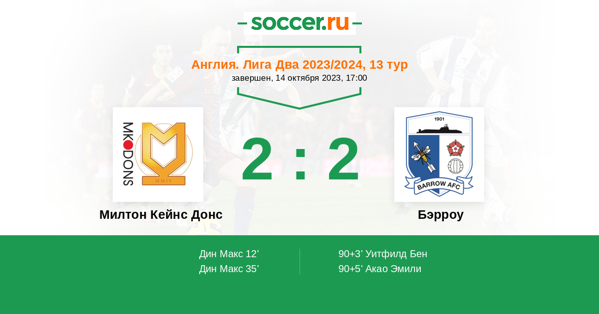 12' (1:0) Дин Макс (18) (Норман Кэмерон (2))
