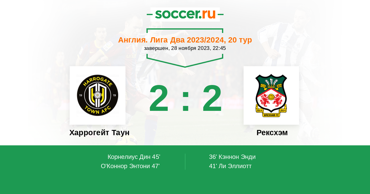 41' (0:2) Ли Эллиотт (38) (Маллин Пол (10))