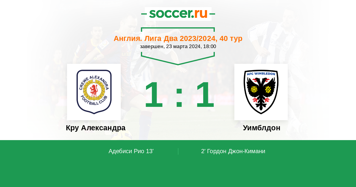 13' (1:1) Адебиси Рио (3) (Лей Льюис (14))