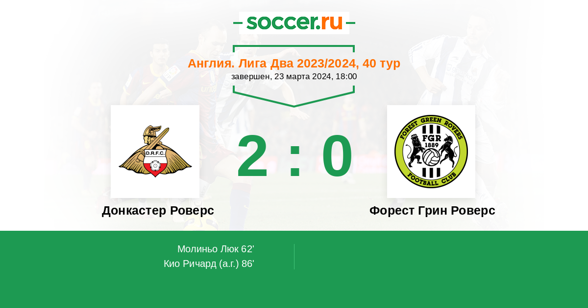 86' (2:0) Автогол Кио Ричард (36)