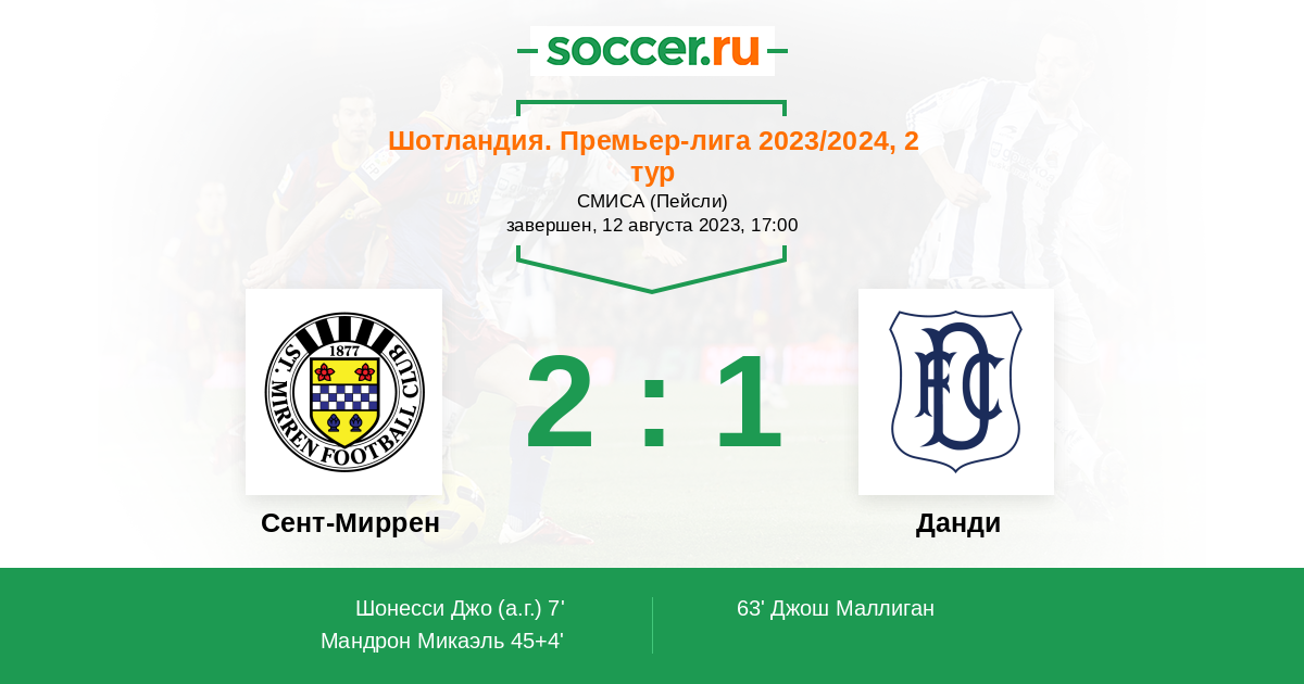 45+4' (2:0) Мандрон Микаэль (9) (Бойд Мунс Колан (15))