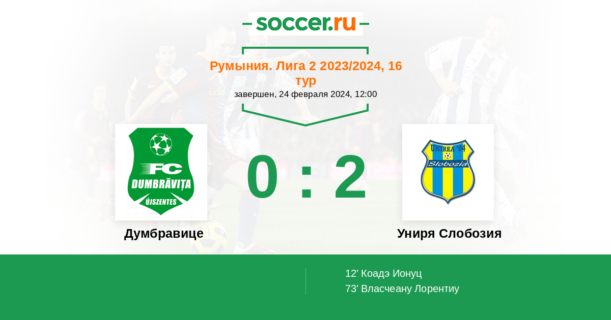 Запасные: Афална Крист (с 58'), Лазэр Драгош (с 71'), Пасионель Стефан (с 71'), Лазар Габриэль (с 82')