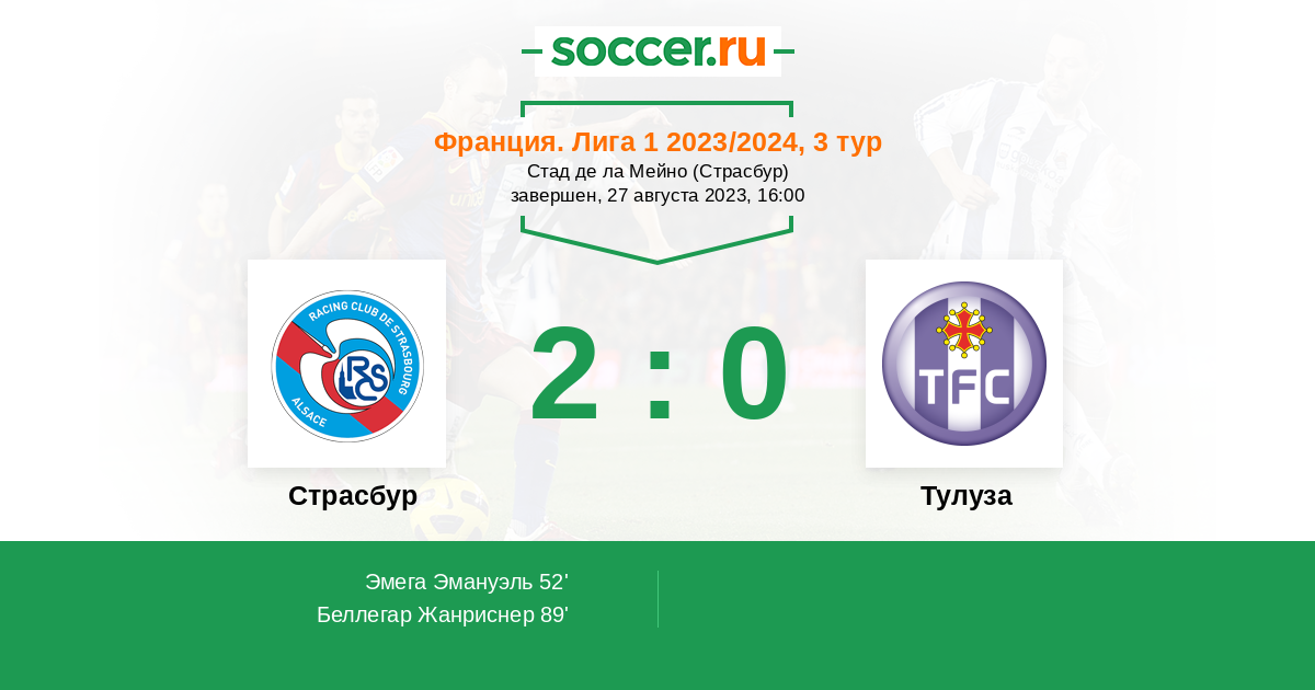 52' (1:0) Эмега Эмануэль (10) (Беллегар Жанриснер (17))