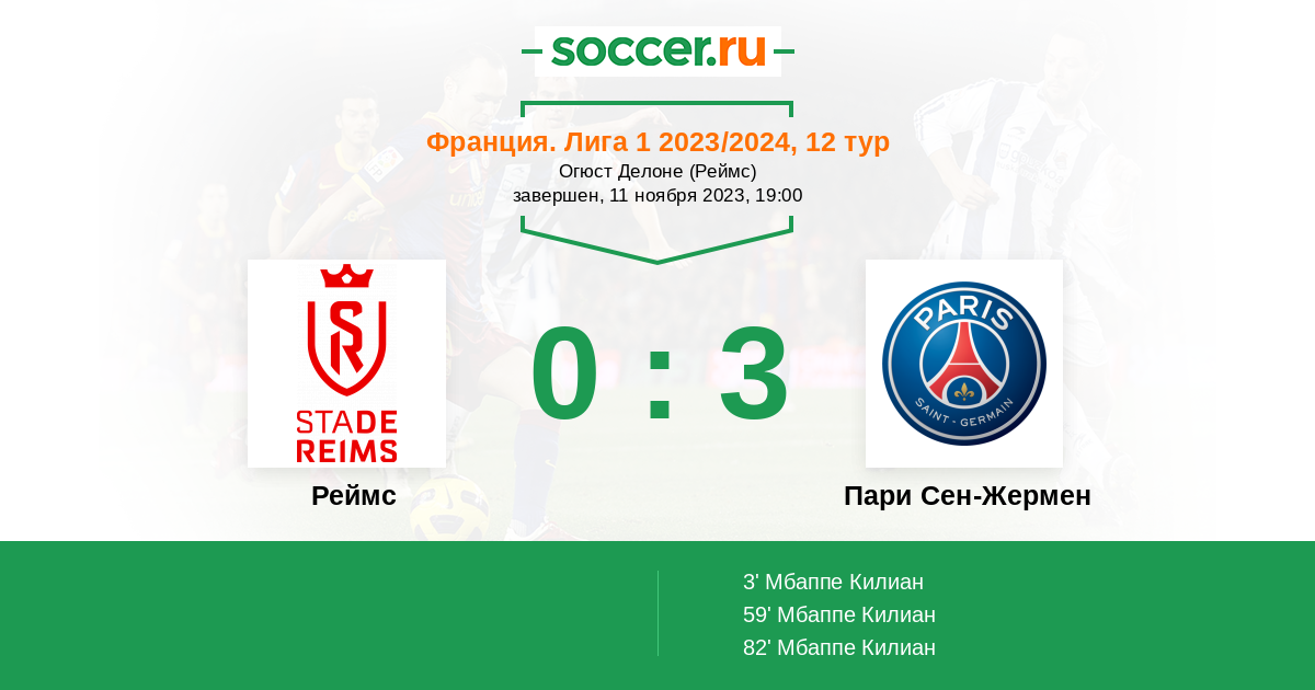 59' (0:2) Мбаппе Килиан (7) (Солер Карлос (28))