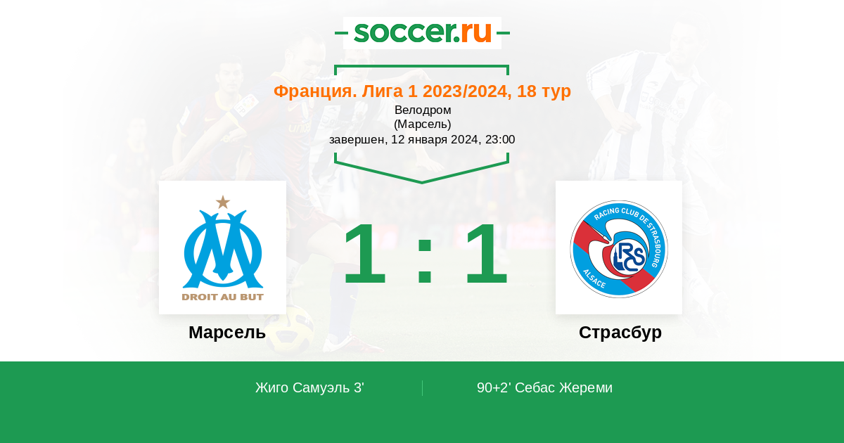 “Страсбур” не обыгрывал “Марсель” как дома, так и на выезде на протяжении последних 18-ти матчей кряду – с далекого 2005-го года. Однако стоит также упомянуть, что три предыдущих встречи между этими клубами завершились ничейными исходами, а “Страсбур” провел неплохой отрезок перед паузой, одержав три победы подряд.