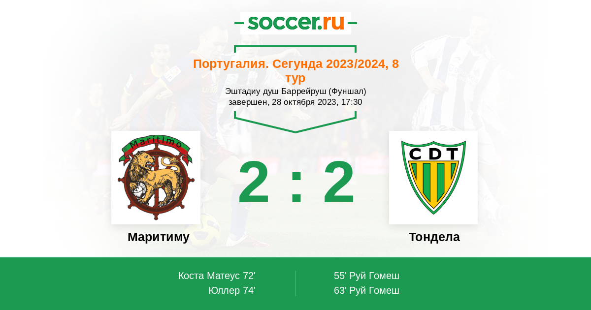72' (1:2) Коста Матеус (4)