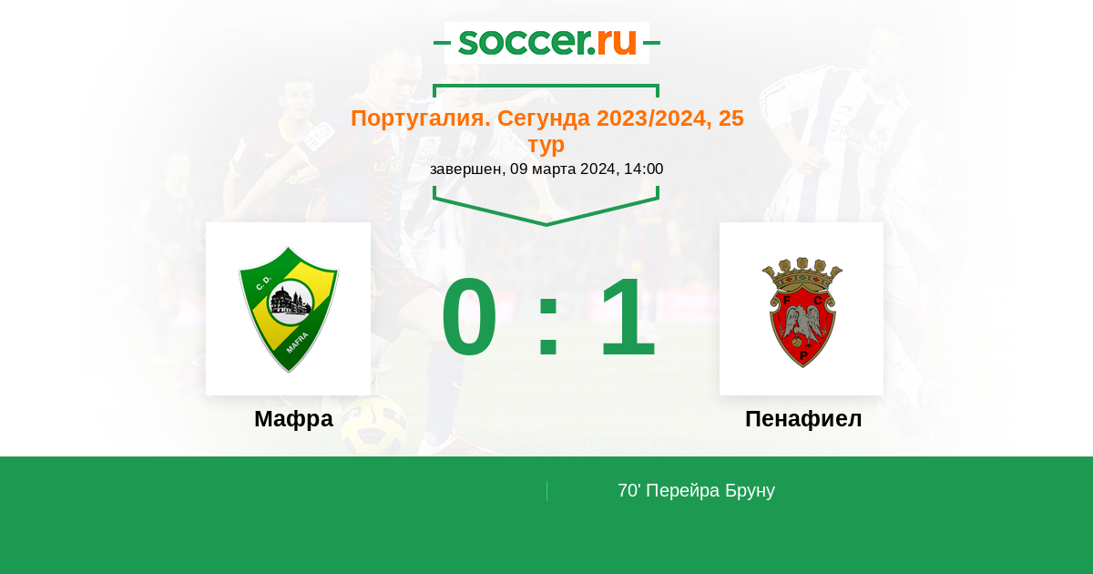 70' (0:1) Перейра Бруну (5)