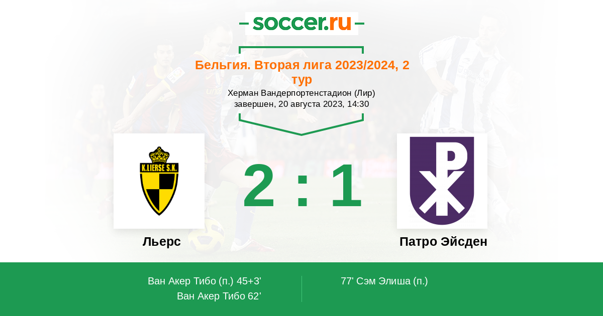 45+3' (1:0) Ван Акер Тибо (8)