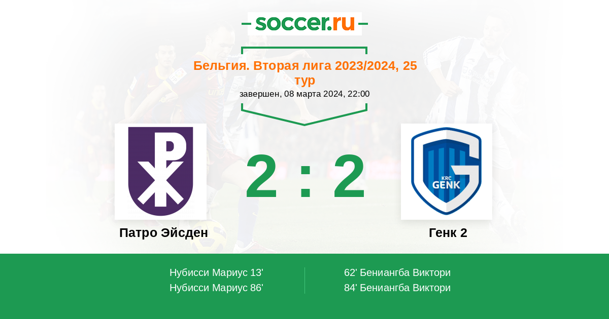 86' (2:2) Нубисси Мариус (9) (Ван Ину Лукас (7))