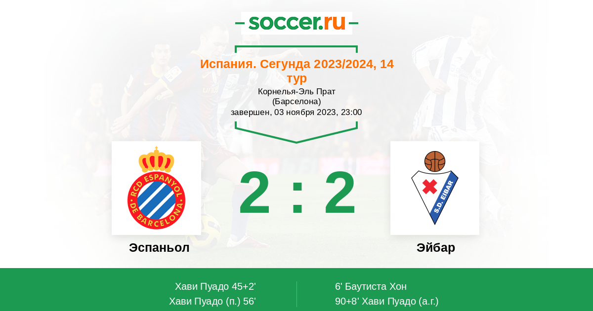 45+2' (1:1) Хави Пуадо (7) (Хофре Каррерас (17))