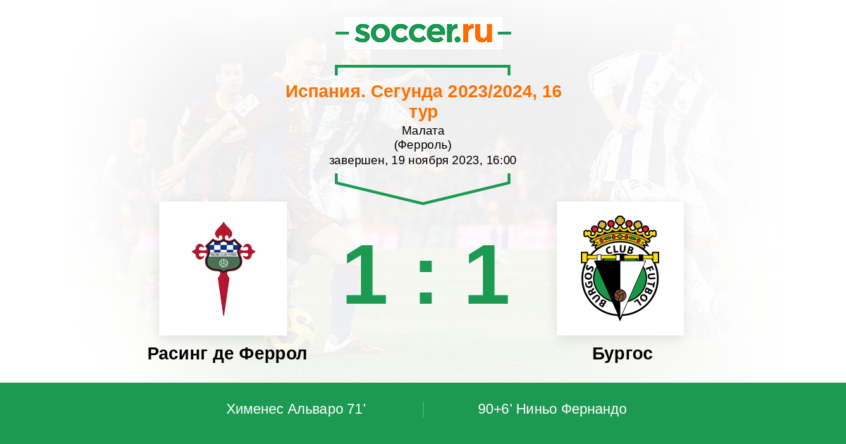 90+6' (1:1) Ниньо Фернандо (9) (Курро Санчес (16))
