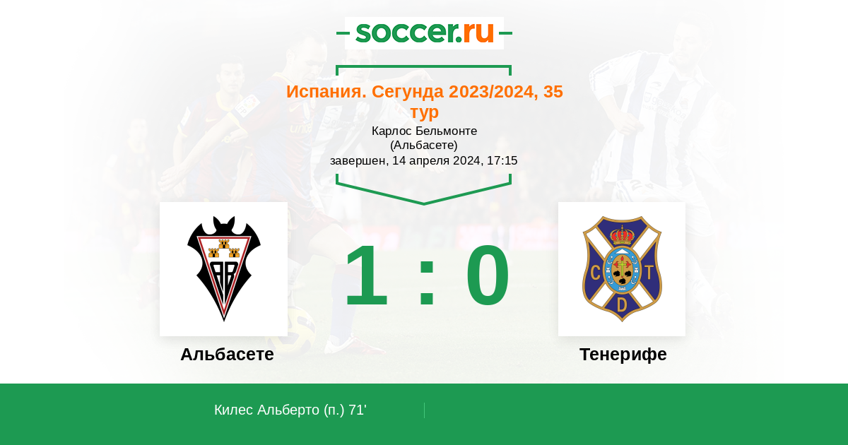 Запасные: 18 Пачеко Антонио (с 67'), 7 Гарсия Хуанма (с 67'), 22 Муньос Карлос (с 79'), 20 Шашуа Самуэль (с 79'), 16 Эскриче Дани (с 81'), 14 Бенито Педро, 1 Барраган Бернабе, 13 Альтубе Диего